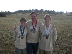 13 year old twins, Daniel and Philipp Kopisch returned from the 2008 US Championship in Orienteering with a gold and bronze medal. The two freshmen at Menlo-Atherton High School traveled a week before the event to Laramie, WY to prepare for the championship at the high altitude of over 8000 feet. They were allowed to train with the US Junior Team and started with high hopes into their first race on August 9th. Daniel who holds currently the titles of Bay Area Champion and Western States Champion in Orienteering managed to finish second – 19 seconds behind the first finisher. Philipp made a severe navigation error and finished 1:46 minutes behind the third place finisher. The second day of the US Championship became as exciting as could be for the twins from Menlo Park. The top finisher from day 1 went first into the forest and finished in exactly 18 minutes. Considering that his winning time from day one was 21:27 min this was fast and the pressure was now really on Daniel. He had to be at least 20 seconds faster. The seconds kept ticking away while the spectators waited for Daniel to emerge from the forest. Finally after roughly 16:30 min he emerged and could be seen while he navigated to his final control. This was bound to become a very close race. Daniel sprinted to the last control, punched it without checking its code and then kept sprinting the last 250 yards to the finish. Totally exhausted he asked for his finishing time. 17:29 min! He had made it – he was now in first place overall.