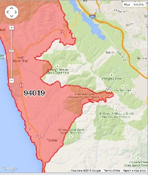 A look at the ZipCode map of the District Web Link on it’s website shows an area west of San Carlos which is labeled 94019. This area is mostly comprised of Filoli and the Phleger Estate. I later determined that both of these are in 94062. I then downloaded a ZipCode map of 94019, and observed that it contacts 94062 in Woodside at Skyline Blvd. and Kings Mountain Rd.