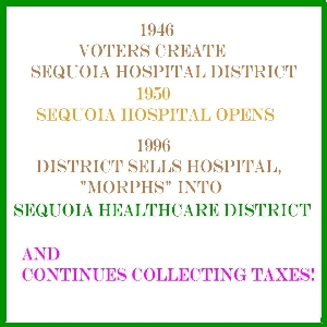The Sequoia Healthcare District website provides a revisionist history of the district, "District At A Glance" here: Web Link They pretend that the Sequoia Hospital District NEVER existed!