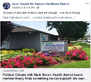 Jack Hickey's principal crime was wanting to shift the work of the Sequoia Hospital District - a district that was specifically established to oversee a hospital that the county no longer owns! - to other elected officials. The district now simply redirects taxes to a bunch of non-profits and charities. That's not a bad thing but we hardly need a bureaucracy to do that.